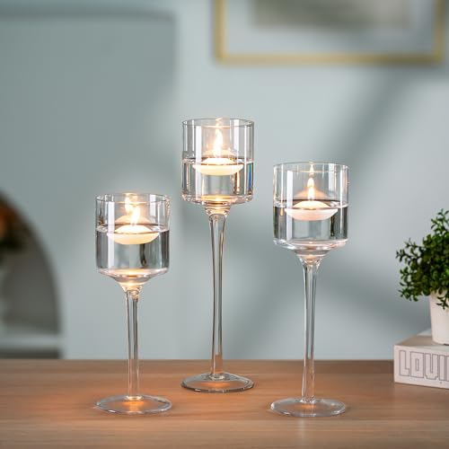 Sziqiqi värmeljusstakar i klart glas Set med 3, hög ljushållare för flytande ljus och pelarljus, eleganta bordscentrum för mantelplåt Matsalar Bröllopsfest Jul Halloween