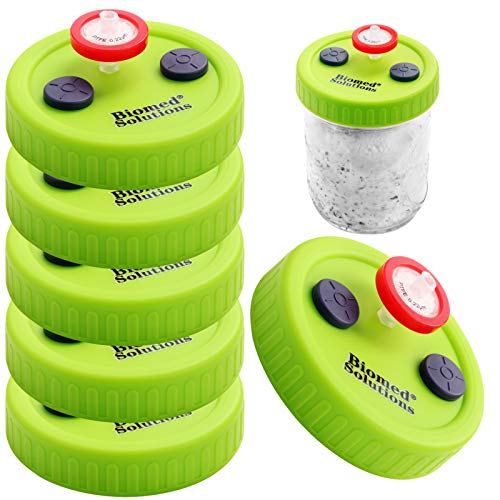 6 st brett munstycke flytande kulturlock matkvalitet plast korn gympa odling glasburk lock med 0,22 um PTFE sprutfilter & 20 mm självläkande injektionsportar för svampbiomedlösningar..