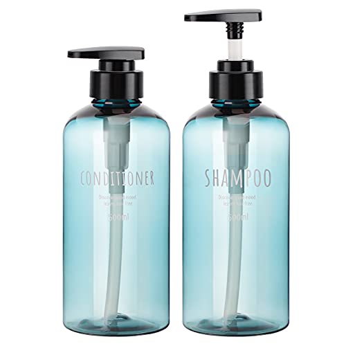 Segbeauty 500 ml duschflaskor påfyllningsbara, 500 ml schampo och balsamflaskor, 2 st flytande tvåldispenser, pumpflaskor för dusch gel lotion kroppstvål badrum hotell plast pressdispenser blå