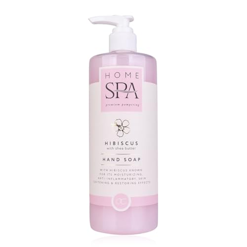 Accentra tvåldispenser HOME SPA med handtvål i dekorativ pumpdispenser av plast – flytande tvål, 490 ml, doft: Hibiskus, presentidé för kvinnor, mamma och flickvän – påfyllningsbar