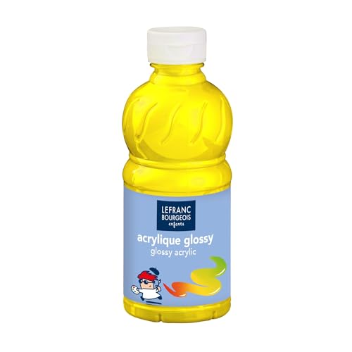 Lefranc Bourgeois 188143 glansiga barn – akrylfärg, klar att använda flytande akrylfärg, glänsande och vattentät, perfekt på papper, kartong, trä, gips, metall, plast, 500 ml flaska – citrongul