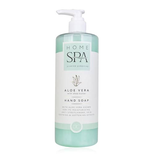 Accentra tvåldispenser HOME SPA med handtvål i dekorativ pumpdispenser av plast – flytande tvål, 490 ml, doft: Aloe vera, presentidé för kvinnor, mamma och flickvän – påfyllningsbar