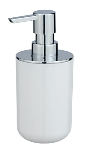 WENKO Tvåldispenser Posa, påfyllningsbar pumpdispenser för flytande tvål, lotion eller diskmedel, vit plast med eleganta kromaccenter, (B x H x D): 7 x 16,5 x 8 cm, kapacitet ca 330 ml, vit