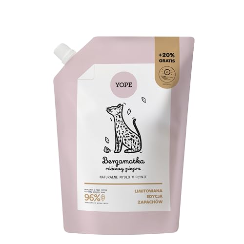 YOPE – Naturlig flytande tvål refill bergamott & rosa peppar – mild handtvål med kiwi-extrakt prebiotika Panthenol Allantoin – Vegan Dermatologiskt testad – 600 ml