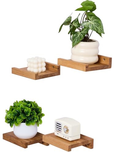 Gieanoo Flytande hyllor, set med 4 massiva ek små hyllor för vägg fyrkantiga flytande hyllor, mini vägghylla för små föremål, hängande vägghylla dekoration för sovrum, vardagsrum