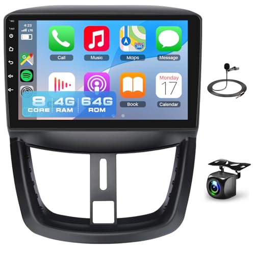Podofo Carplay bilradio för Peugeot 207 2006-2015, Android 2G+32G 9" pekskärm HiFi Android Auto GPS WiFi Bluetooth FM RDS Radio USB stereospelare för Peugeot207 kamera