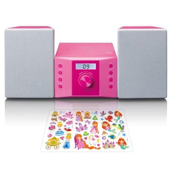 Lenco Micro set med CD FM-radio AUX-IN klistermärken Rosa