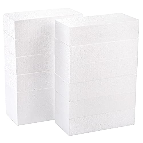 YOUEON 12-pack rektangulära skumblock 20 x 10 x 5 cm/8 x 4 x 2 tum hantverksskum fyrkantiga block hårt skumbrädor frigolit, torra blommiga skumtegelstenar för konst och hantverk, blomsterarrangemang,