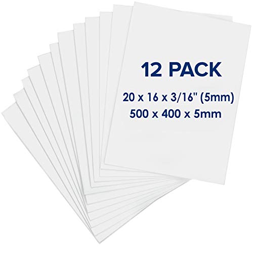 Foam Board Large 500 x 400 x 5mm - 12 Pack - Skumskiva (Foam Core Board), syrafri, dubbelsidig, Skyltbräda Skumbräda för montering, hantverk, modellering, konst, presentation och vetenskapsprojekt