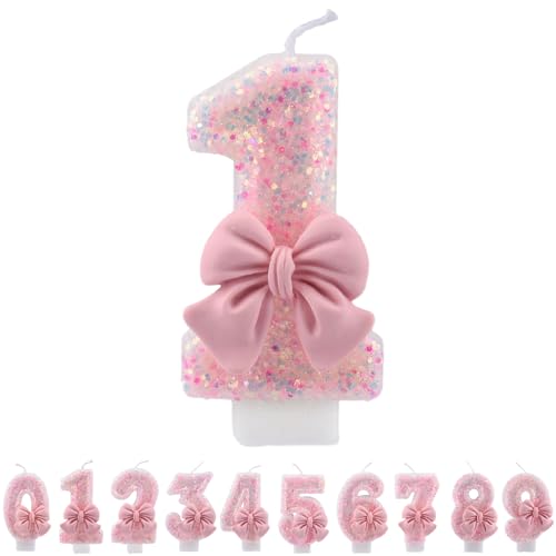 ALLVA ljus födelsedag 1, födelsedagsljus siffror flickor, glittrande ljus 1, födelsedagsljus för barn, vuxna, födelsedagsfest, jubileum, milstolpe (7,5 cm, rosa)