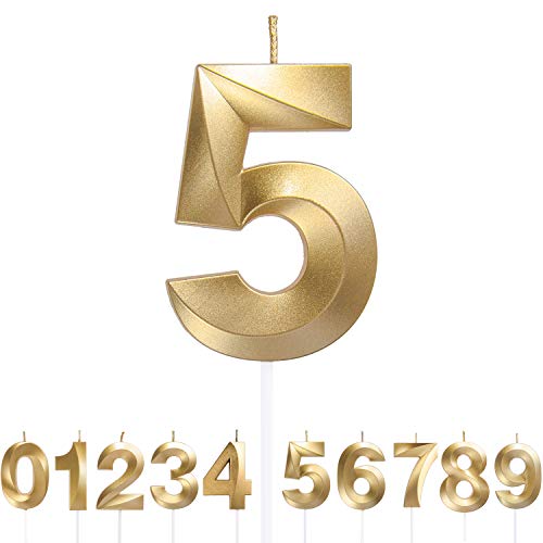 Dekora - Original Birthday Candles | Födelsedag Ljus Nummer 5 | Födelsedag Guld Ljus