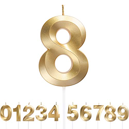 Dekora - Original Birthday Candles | Födelsedag Ljus Nummer 8 | Födelsedag Guld Ljus