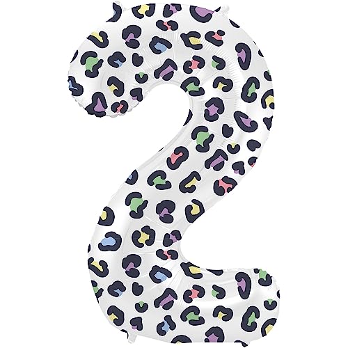 Folat 63912 ballong födelsedag siffra 2 ljus panter vit 86 cm helium dekoration födelsedagsdekoration, ballong nummer, färgglad