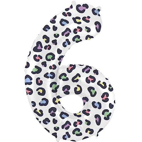 Folat 63916 ballong födelsedag siffra 6 ljus panter vit 86 cm helium dekoration födelsedagsdekoration, ballong nummer, färgglad