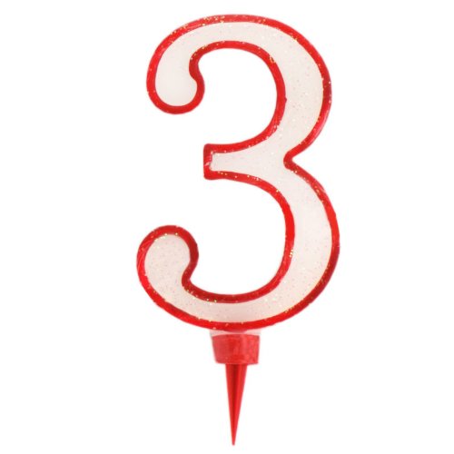 VISCIO Trading 154769 ljus födelsedag nummer 3, vax, vit/röd, 12 x 24,5 x 1,5 cm