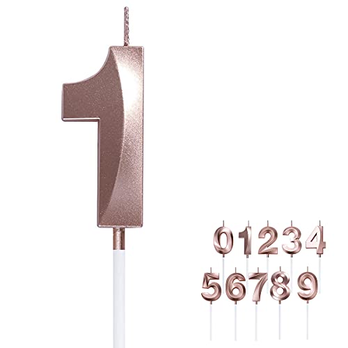 Födelsedag siffror ljus 3D-form guld glitter födelsedagsljus dekorativ födelsedagstårta ljus 0 1 2 3 4 5 6 7 8 9 tårtdekoration dekoration för bröllopsfest bröllop (roséguld, 1)