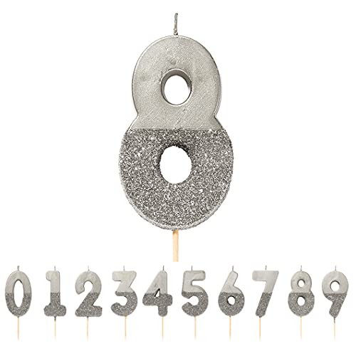 Talking bord premium kvalitet silver nummer åtta 8:e födelsedag ljus tårta dekoration vax, glitter höjd 8 cm, 3 tum vacker och glittrande