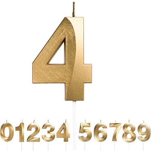Dekora - Original Birthday Candles | Födelsedag Ljus Nummer 4 | Födelsedag Guld Ljus