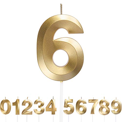 Dekora - Original Birthday Candles | Födelsedag Ljus Nummer 6 | Födelsedag Guld Ljus