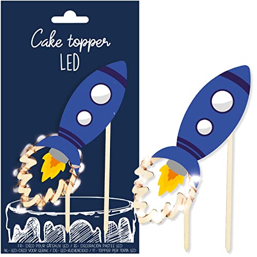 Scrapcooking - Cake Topper LED raket - barns födelsedag trä ljus dekoration för kakor, bakverk, kakor och desserter - festtillbehör prydnad - 4968