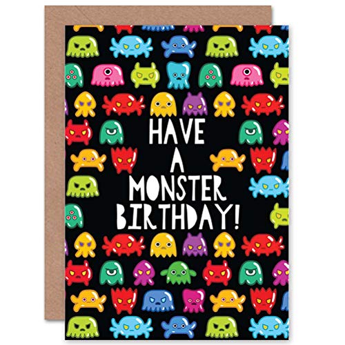 Wee Blue Coo Monster födelsedag barn ljus tomt gratulationskort