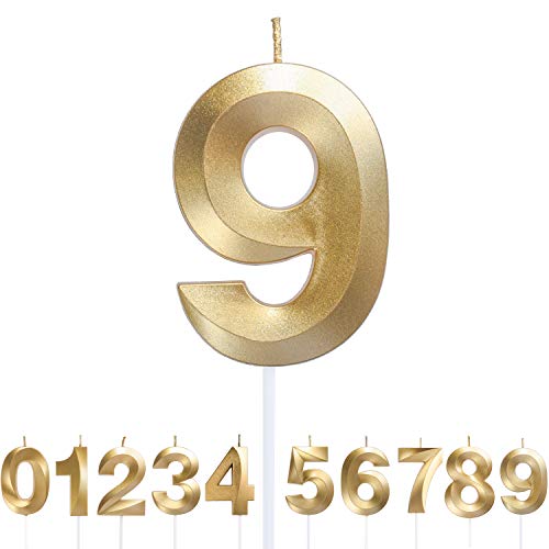 Dekora - Original Birthday Candles | Födelsedag Ljus Nummer 9 | Födelsedag Guld Ljus