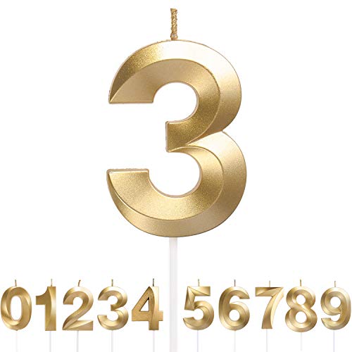 Dekora - Original Birthday Candles | Födelsedag Ljus Nummer 3 | Födelsedag Guld Ljus
