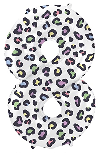 Folat 63918 ballong födelsedag siffra 8 ljus panter vit 86 cm helium dekoration födelsedagsdekoration, ballong nummer, färgglad