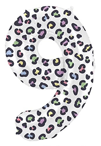 Folat 63919 ballong födelsedag siffra 9 ljus panter vit 86 cm helium dekoration födelsedagsdekoration, ballong nummer, färgglad