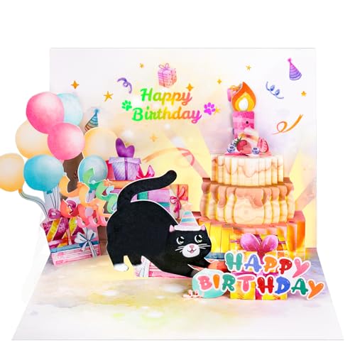 Pop Up födelsedagskort med musik 3D katt kort födelsedag blåsbart ljus födelsedagskort rolig för kvinna barn flickvän flicka