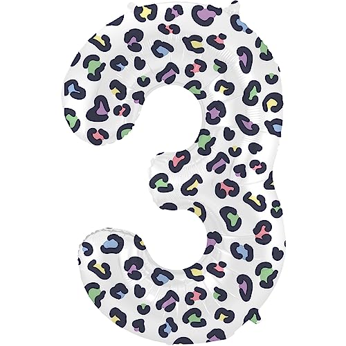 Folat 63913 ballong födelsedag siffra 3 ljus panter vit 86 cm helium dekoration födelsedagsdekoration, ballong nummer, färgglad