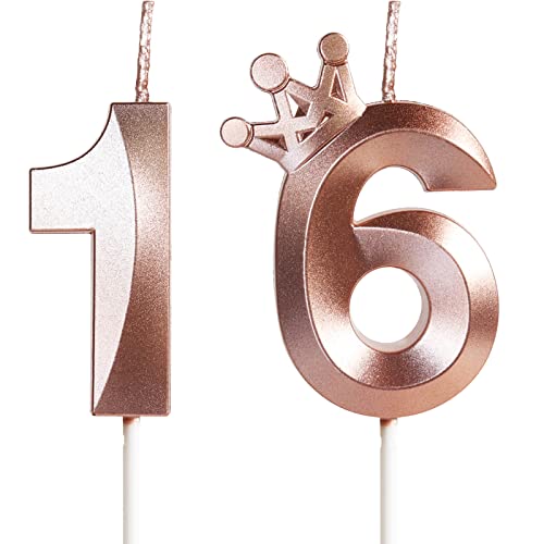 Yiran Ljus Födelsedag Rose Gold med Girl Crown Ljusstake Speciella Nummer 16 för Party Flicka Kvinna Bröllopsfest Förnödenheter, 16 År