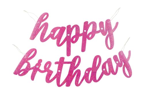 Pink Glitz Happy Birthday-skript prismatisk folieförenad banderoll (83 cm) – perfekt festdekor för födelsedagar och fester – 2 st
