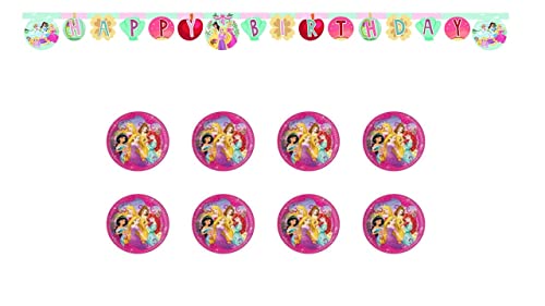 ALMACENESADAN -4779, Prinsessor-Pack bestående av 8 multipla kartongtallrikar och Happy Birthday-girlang ca 2,40 meter, perfekt för fester och födelsedagar (8435510347796)