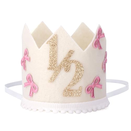BOXOB 1/2 Födelsedagshatt, Rosettglitter Halvfödelsedagskronhatt för 6-månadersfirande Festdekorationer för Bebis Flickpojke Fest Fotorekvisita Tillbehör