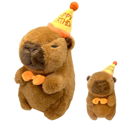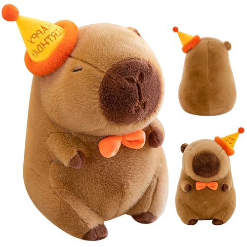 ClcIosis Capybara gosedjur, Capybara plyschdjur, Kapibara gosedjur med födelsedagshatt, Kabibara gosedjur, present för barn, heminredning
