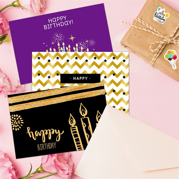 Födelsedagskort med kuvert 18-pack, 20 x 15 cm