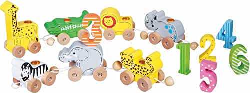 small foot Födelsedagståg, djur av trä, med nummer lok, 6 vagnar med djurfigurer nummer 1–9, dekoration för barnkalas, 12626