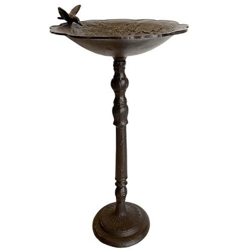L'Héritier Du Temps Stort fågelbad på fot fodertråg flyktigt dricksvatten utomhus fågelbad i brunt patinerat gjutjärn 36 x 36 x 75 cm