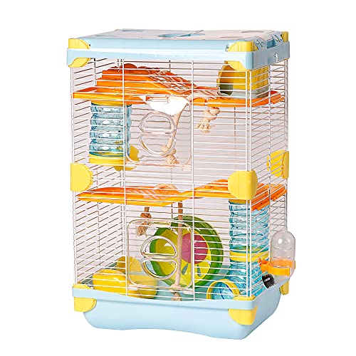 Roborowski hamsterbur, med 2 våningar, hjul, dricktråg och fodertråg, 27,7 x 20,5 x 42,5 cm (blå)