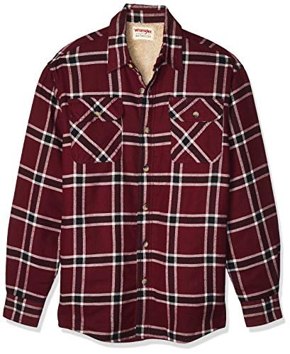Wrangler Authentics Långärmad sherpa-fodrad flanellskjorta för män, Tawny Port, M