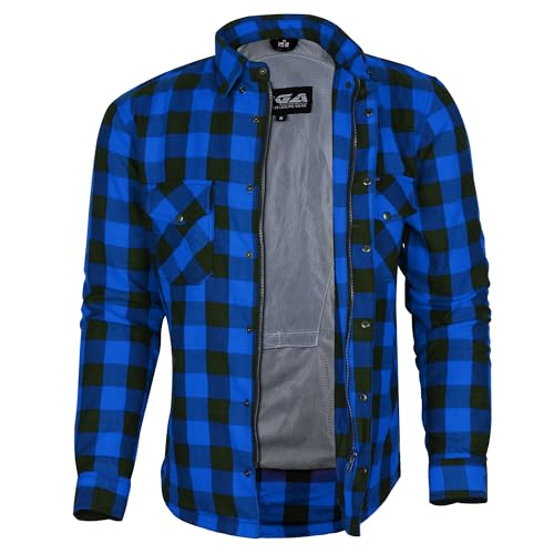Bikers Gear Australien unisex Ks3004-l motorcykel Kevlar Aramid fodrad skyddande flanellskjorta blå svart, blå/svart, L UK