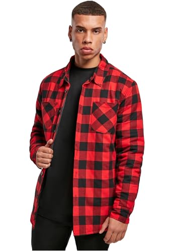 Urban Classics Skjortjacka för män, övergångsjacka i flanellskjorta, fodrad, lumberjacka i skogshuggarlook, storlek S till 5XL, svart/röd, M