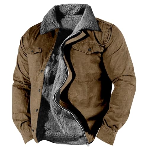 HANXIULIN struktur varm fodrad ullrutig skjortjacka för män, vinter tung tjock jacka, klassisk dragkedja jacka varm tröja herr vinter, kaki, XL