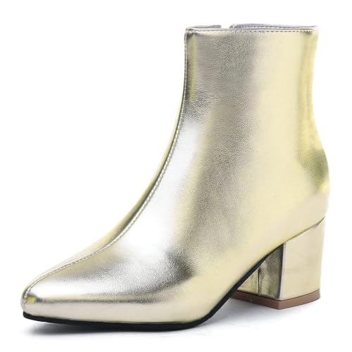 Dressiga ankelstövlar för kvinnor,Klassisk spetsad tå Mid Chunky Heel Side Dragkedja Fodrade Höst Vinter Booties,Simplicity Chelsea Low Heel Dress Fashion Boots,Gold,39 EU
