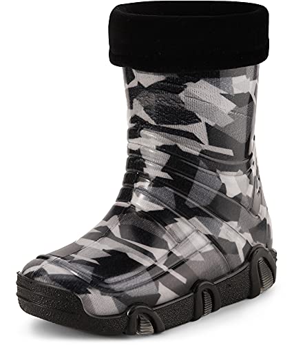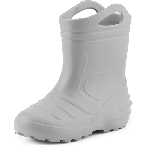 Laddheid gummistövlar barn fjäderlätta Eva regnstövlar för flickor och pojkar termo gummistövlar fodrade KL051, GRÅ, 30 EU