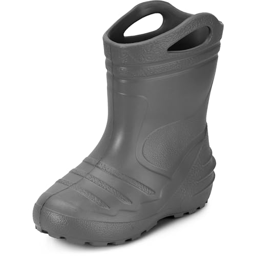 Laddheid gummistövlar barn fjäderlätta Eva regnstövlar för flickor och pojkar termo gummistövlar fodrade KL051, GRÅ, 32 EU