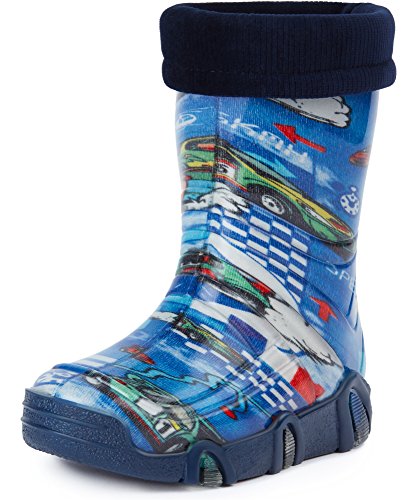 Laddheid gummistövlar barn fjäderlätta Eva regnstövlar för flickor och pojkar termo gummistövlar fodrade KL051, Mörkblå, 34 EU
