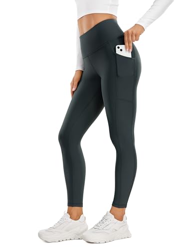CRZ YOGA Thermal Fleece Fodrade Leggings Kvinnor 25 '' - Hög midja vinterträning vandringsbyxor med fickor Varma löpning Tights Mystisk grå S