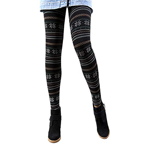 Libella Vinterleggings, skinny thermoleggings, löparbyxor, norska leggings med julmotiv och fodrade med mjuk fleece, kvinnor/flickor 4145-A+F-2, svart, en storlek, 1-pack modell A, En Storlek